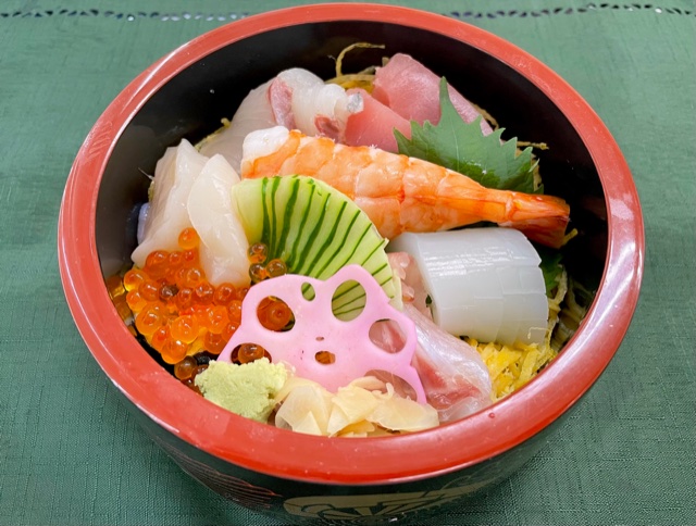 昔ながらの優しい味のちらし寿司で、見た目も美しい満足の一皿でした!