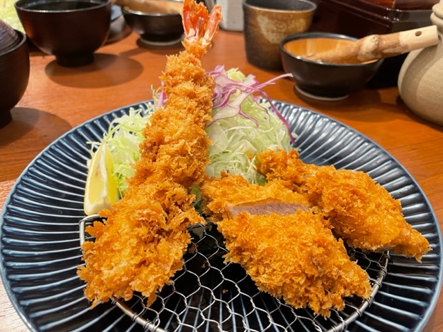 サクサクの衣、肉質やわらかなヒレカツ、大ぶりの海老フライ。