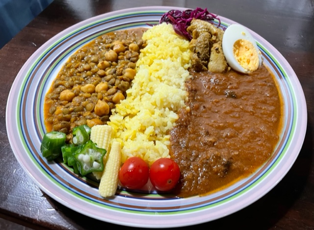 豆がたっぷり入ったダルカレー、牛すじ煮込みやアチャールなど満腹必至でした!