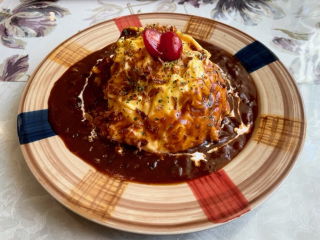 ふわふわとろとろの卵、ジューシーなハンバーグ、バターの効いた甘めの